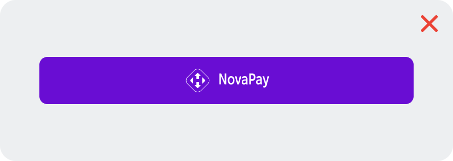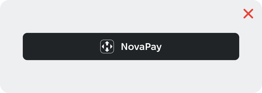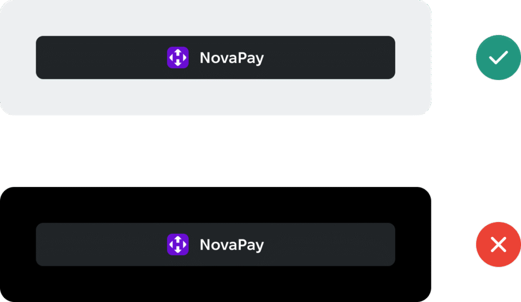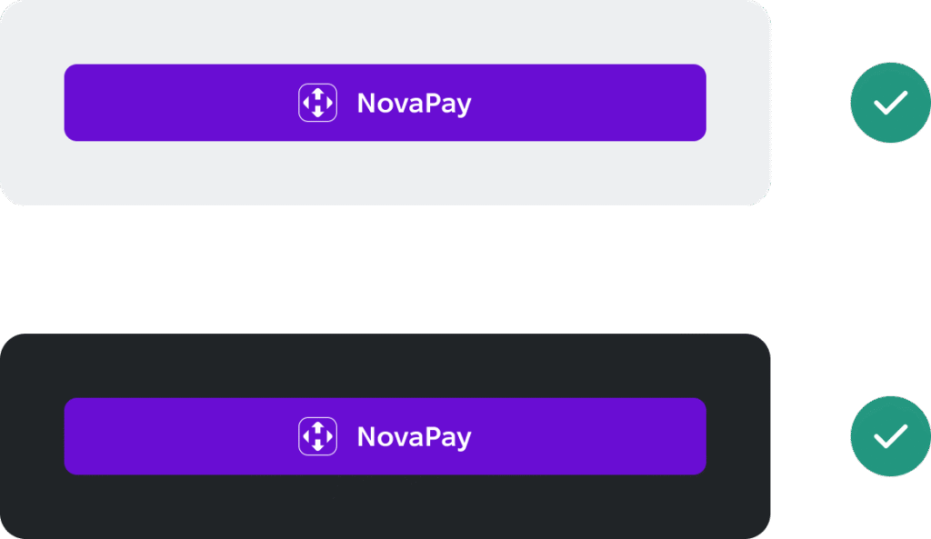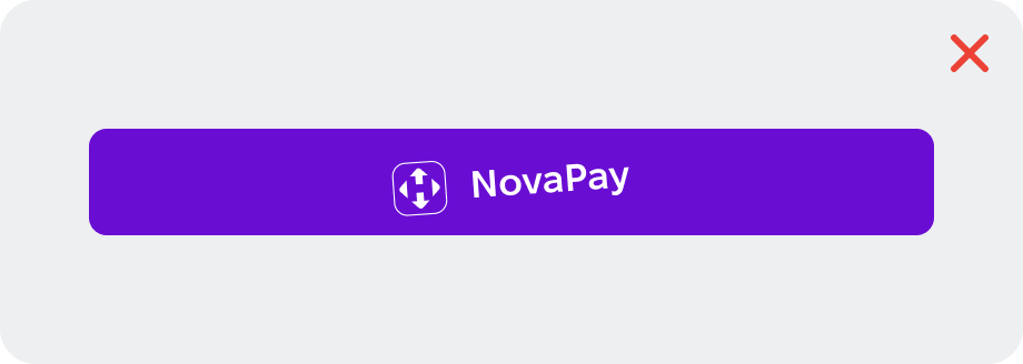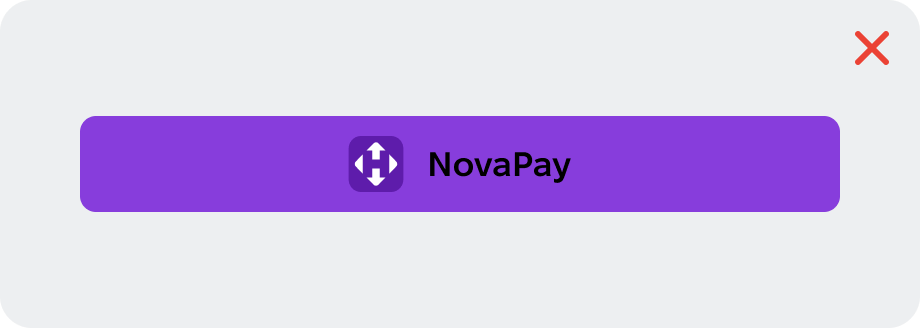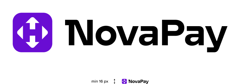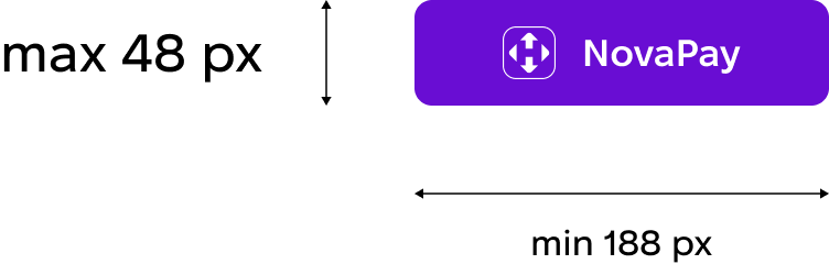 Бренд-матеріали NovaPay Логотип Основний логотип Основний логоблок спроєктований з чітким співвідношенням розмірів символа до шрифтової частини та фіксованими відстанями між елементами. Не змінюй відстанні та пропорції основного логоблоку лого в svg лого в png Відступи Навколо логотипа слід лишати сейф-зону 1/2 висоти великих літер. Це простір, у який не мають потрапляти жодні інші елементи Колір лого для різних фонів На основному фіолетовому фоні використовуй монохромний білий варіант лого з контуром навколо іконки На інших фонах іконка завжди лишається фіолетовою. Колір літер може бути чорним або білим в залежності від яскравості фону На темних фонах використовуй логотип з білими літерами Фірмова кнопка, як спосіб оплати Стилі кнопки Стандартний інтернет-еквайрингДля оплати за допомогою NovaPay, використовуй фірмову кнопку з логознаком та написом «NovaPay» Основна кнопка – фіолетова з білим логознаком Другорядна кнопка – чорна з фіолетовим логознаком та білими літерами Форма Обирай форму кнопку відповідно до стилю твого магазину або сайту 1. Дефолтна – скруглена 2. Квадратна 3. Повністю скруглена Розміщення на фоні ФіолетоваМожна розміщувати як на світлому, так і на темному фонах ЧорнаМожна розміщувати лише на світлому фоні Розмір Стандартний інтернет-еквайрингШирина кнопки може залежати від ширини контейнера, в якому вона розміщена. Мінімальні величини залежать від висоти кнопкиВисота кнопки може варіюватися між 40, 48 та 56 px Кнопка NovaPay та NovaPay CheckoutШирина кнопки може залежати від ширини контейнера, в якому вона розміщенаМінімальна висота кнопки 48 px Неприпустиме використання Не можна використовувати чорну кнопку з білим логознаком Не можна змінювати кут нахилу логознаку та тексту всередині кнопки Не змінюйте місцями логознак та напис NovaPay Не можна використовувати чорну кнопку з білим логознаком Не можна змінювати кут нахилу логознаку та тексту всередині кнопки Не змінюйте місцями логознак та напис NovaPay Маркетингові банери Стандартний інтернет-еквайринг та кнопка NovaPay Для оплати за допомогою NovaPay, використовуй банер світло-фіолетового кольору з синьо-фіолетовим градієнтом обводкиШирина банеру залежить від ширини контейнеру, в якому він розміщений. Висота банеру динамічна в залежності від кількості контентуІлюстрація жовтого купону для маленьких розмірів банеру зменшуєтсья для збереження пропорці NovaPay Checkout Для спрощеної оплати в один клік за допомогою NovaPay, використовуй фіолетовий банер з QR-кодом та фірмовою ілюстрацієюШирина банеру залежить від ширини контейнеру, в якому він розміщений Використання логотипів Нижче розміщені логотипи платіжних систем та методів оплати, які підтримує NovaPayЯкщо стандартний інтернет-еквайринг та кнопка NovaPay, логотипи платіжних систем мають відображатися у футері в сірих відтінках Приклад: