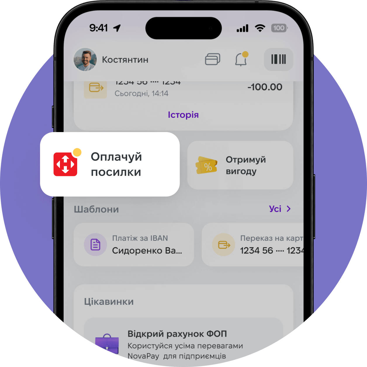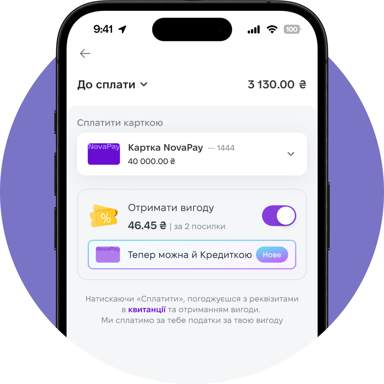 in the NovaPay app with a benefit up to 20%For 6 cash-on-delivery parcels per month. The maximum amount of a benefit per parcel is 50 UAH